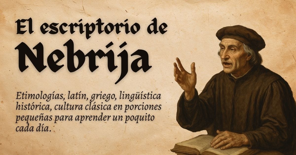 Por ir concluyendo: en El escriptorio de Nebrija iré publicando contenidos breves (en principio, algo más cortos que esta pequeña introducción-presentación) sobre etimologías, latín, griego, lingüística histórica y cultura clásica.